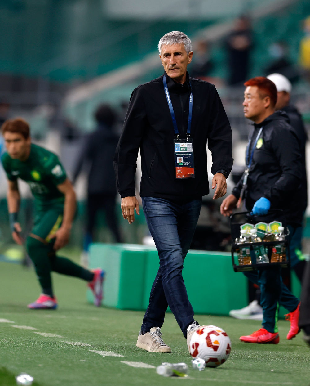 北京国安队主教练基克·塞蒂恩(前)在场边(资料图)。新华社记者 王丽莉 摄
