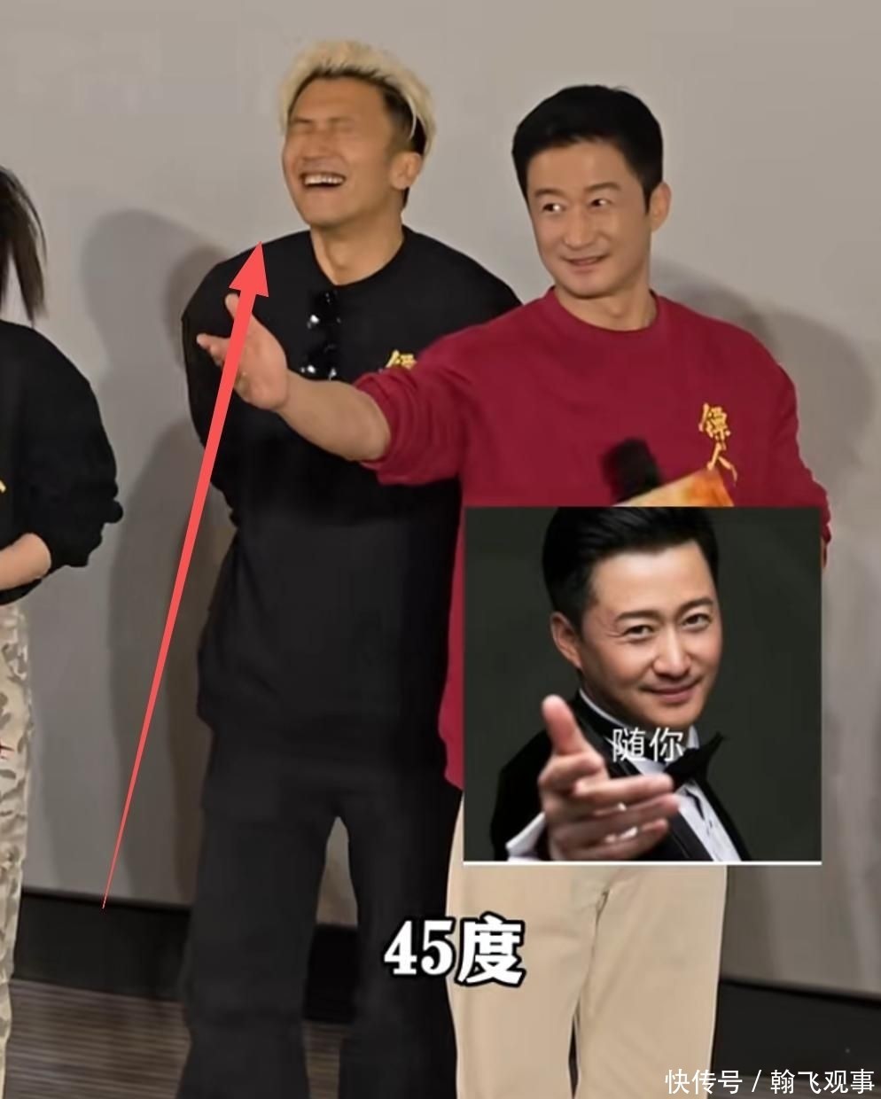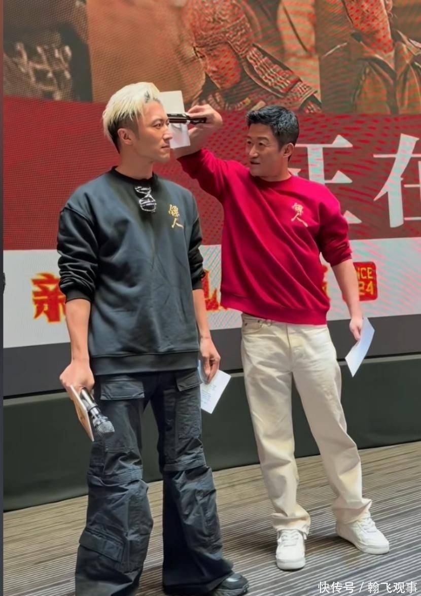 谢霆锋开口讲话时,吴京悄然移步至舞台最外侧。有观众笑言:“话筒被抢走了,他负气离场。”