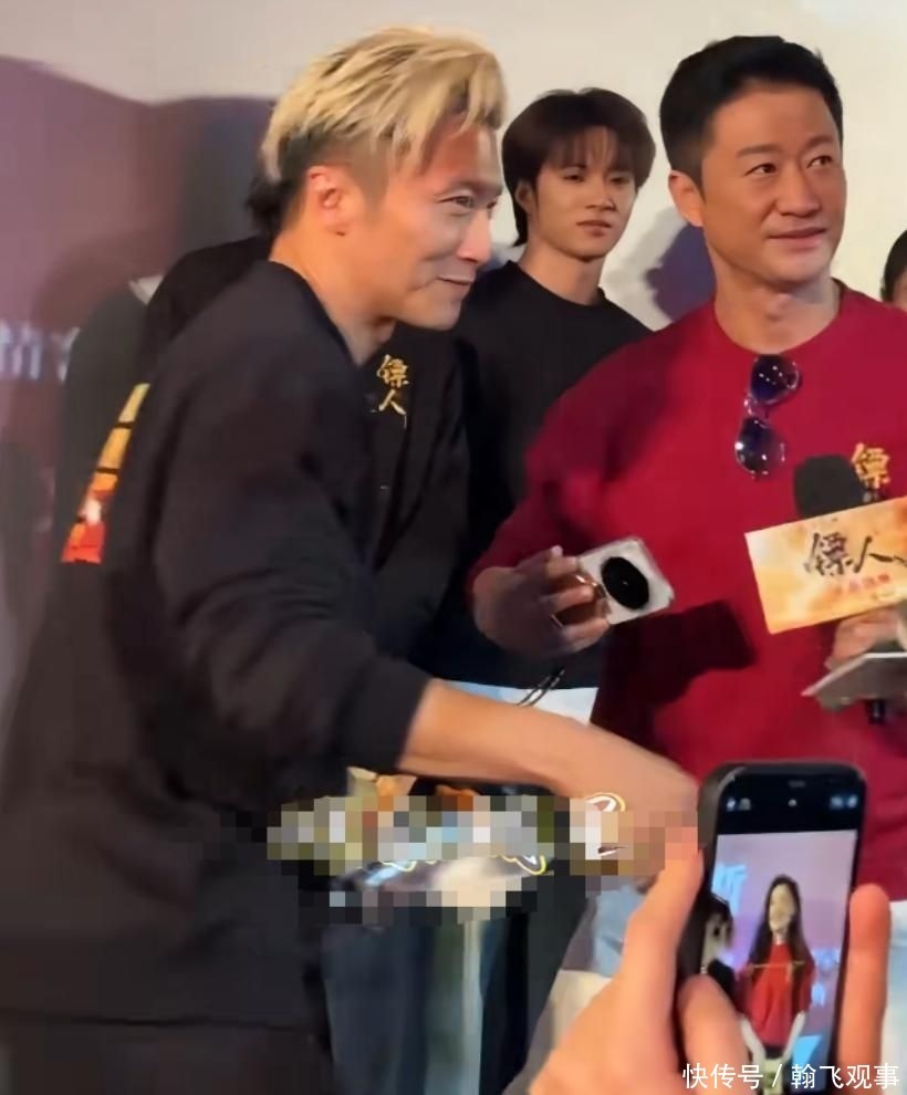 合影环节,谢霆锋需由吴京轻轻推搡才敢迈步上前。无论合照前后,整张脸已红至紫褐,情绪浓度拉满。令人费解的是,从业二十余载,他依然保留着初入行时那份青涩腼腆。